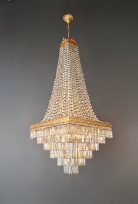 Die gesamte Verkabelung wurde erneuert und entspricht nun modernsten Standards. Alle Kristalle wurden sorgfältig von Hand geknüpft, wodurch ein lebendiger und funkelnder Lichteffekt entsteht.