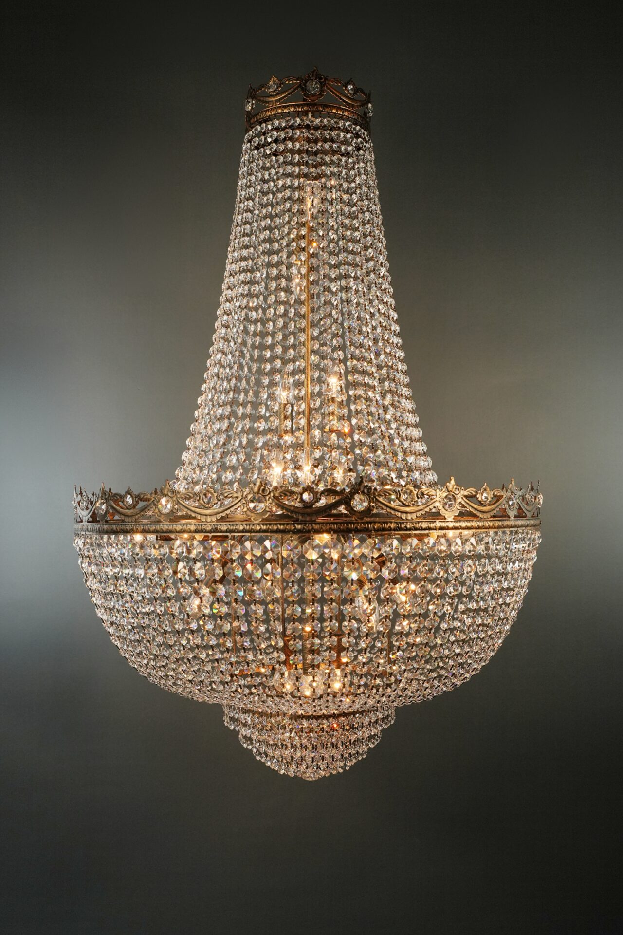 Der Bleikristall Kronleuchter im Antik Look stammt aus unserer hauseigenen Produktion. Wir bieten Ihnen die Möglichkeit, individuelle Anpassungen vorzunehmen – sei es in Bezug auf die Höhe, den Durchmesser oder andere Details. Wir möchten sicherstellen, dass dieser Kronleuchter perfekt zu Ihren Wünschen passt.