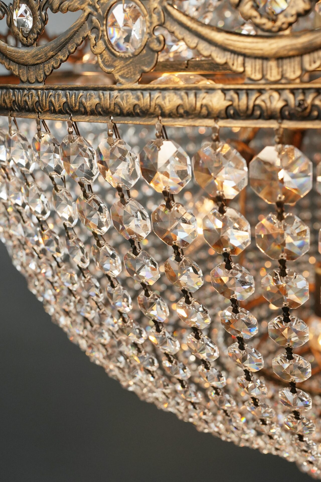 Unsere antiken Kronleuchter werden montagefertig geliefert. Neue Kronleuchter müssen vor Ort zusammengebaut werden. Kontaktieren Sie uns, wenn wir Sie dabei unterstützen sollen!