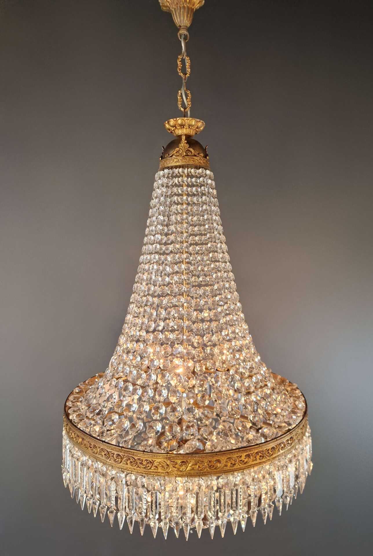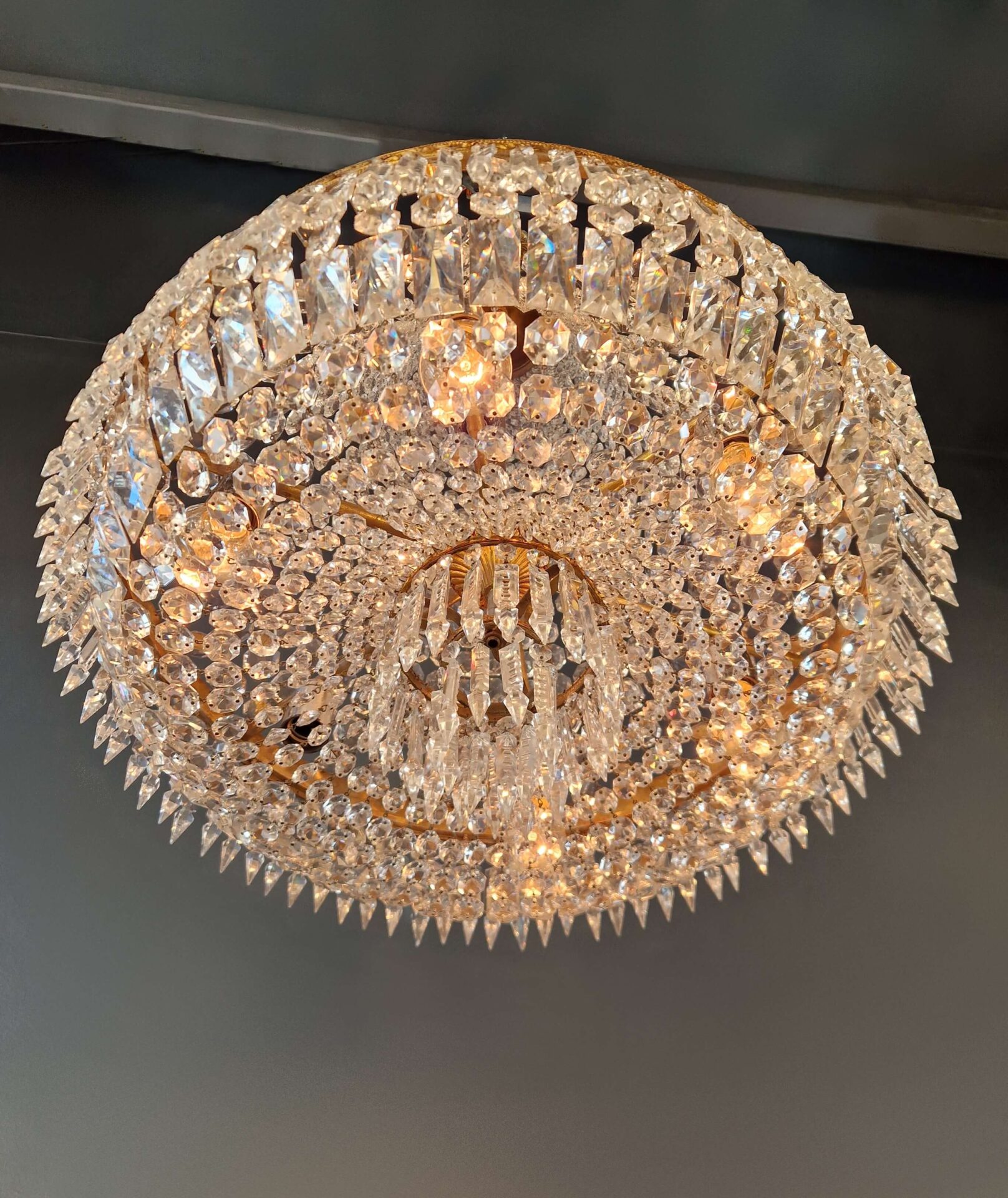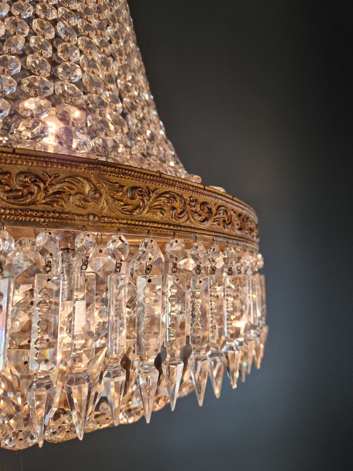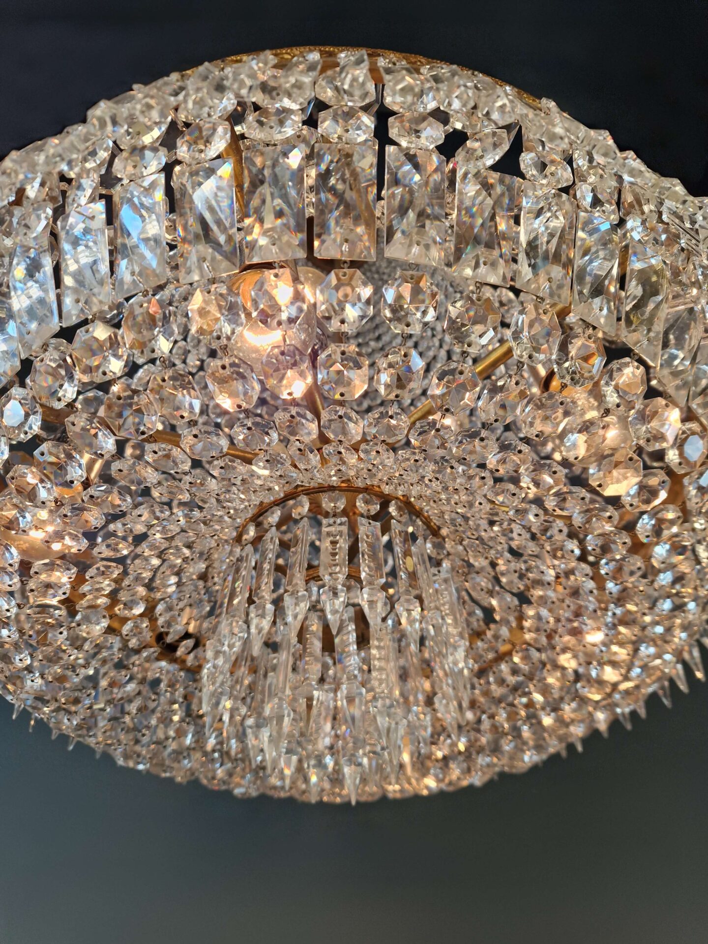 Vor dem Versand wird der Kronleuchter gründlich gereinigt und fehlende Kristalle werden sorgfältig ersetzt, um sicherzustellen, dass er in makellosem Zustand bei Ihnen ankommt.