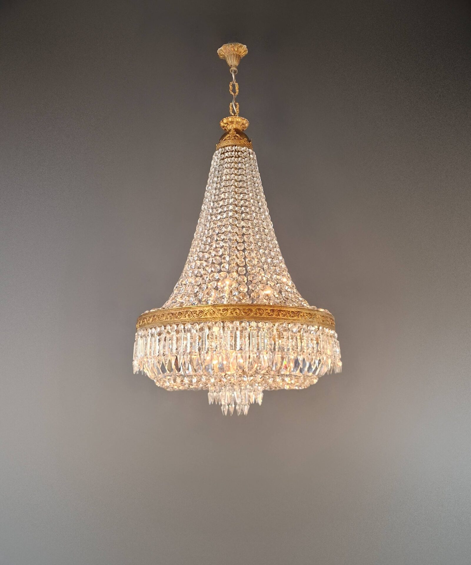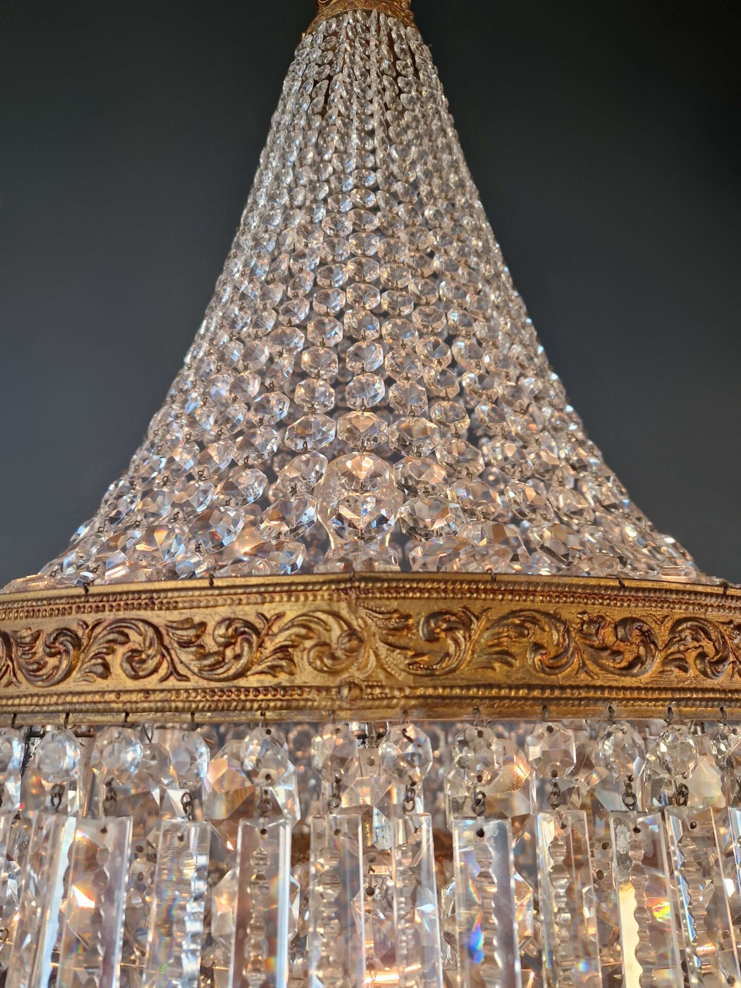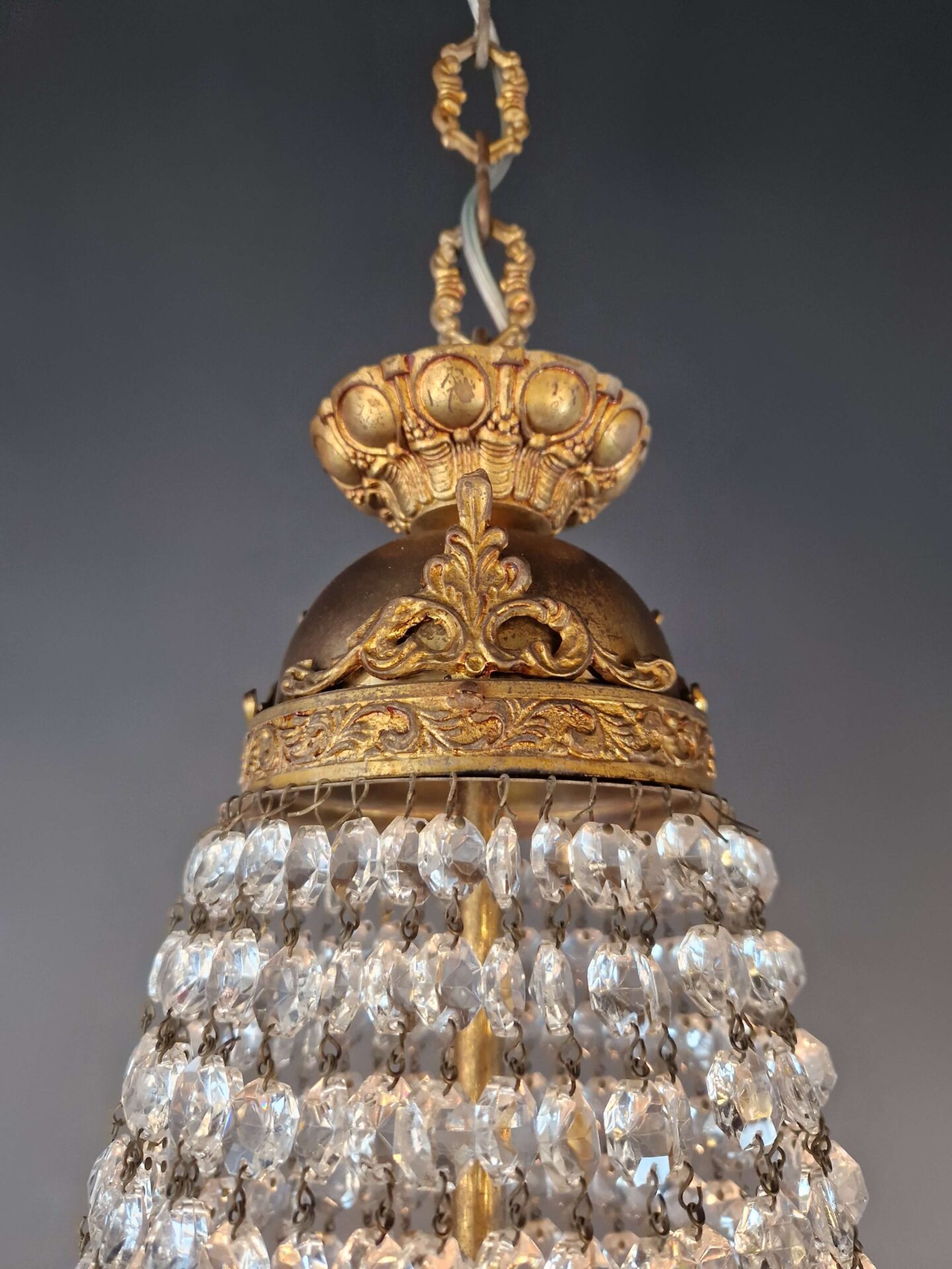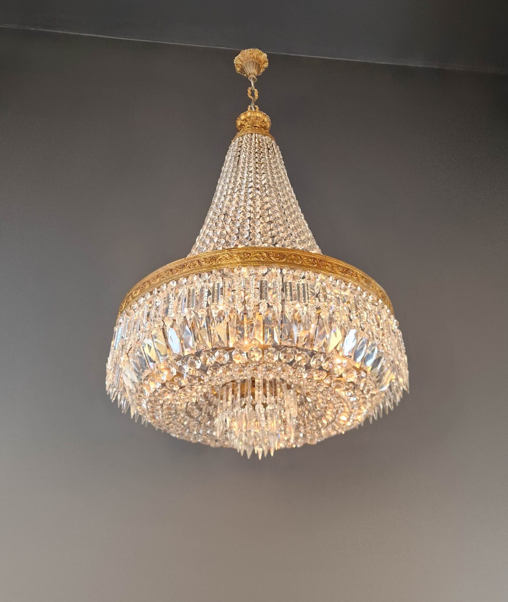 Vor dem Versand wird der Kronleuchter gründlich gereinigt und fehlende Kristalle werden sorgfältig ersetzt, um sicherzustellen, dass er in makellosem Zustand bei Ihnen ankommt.
