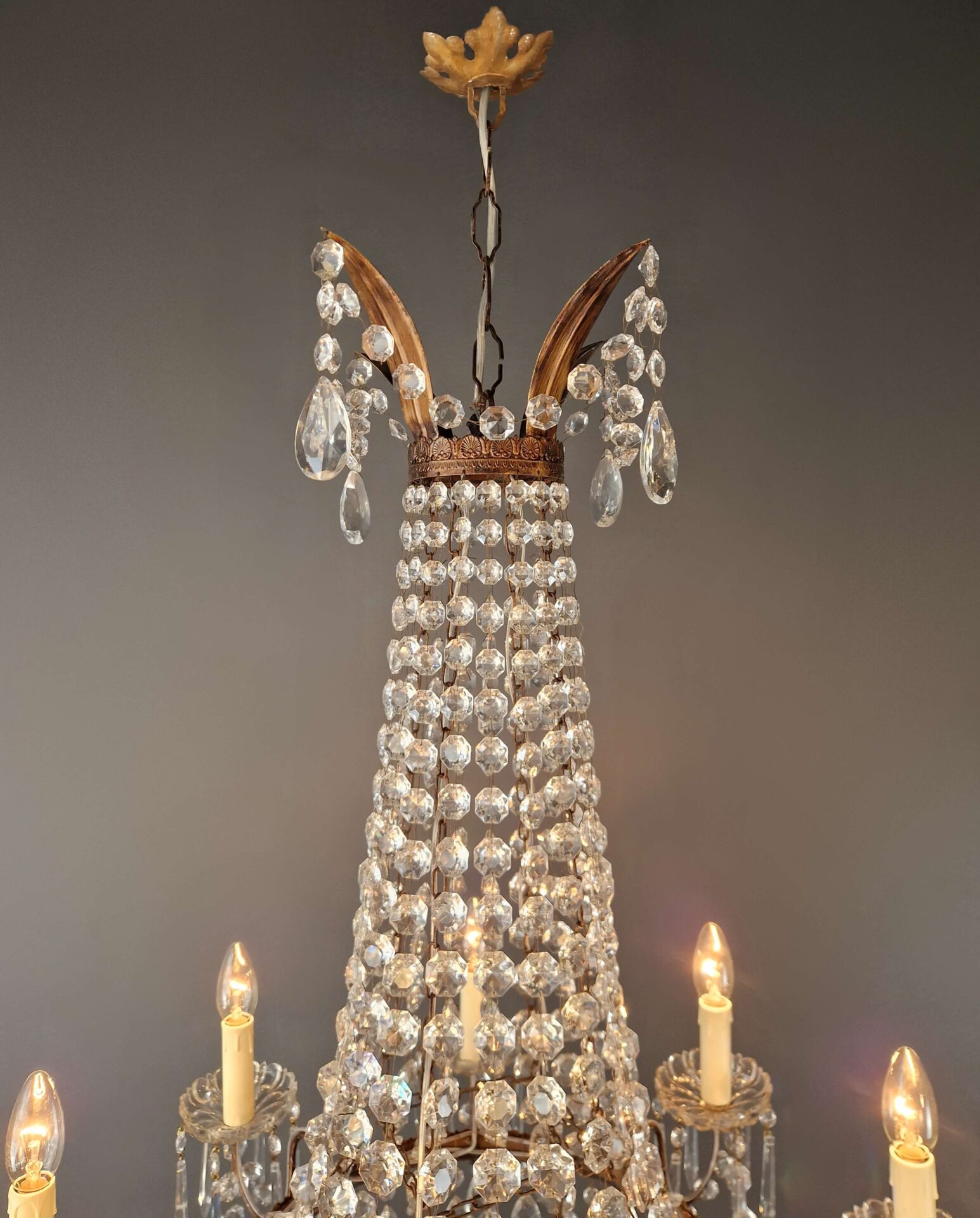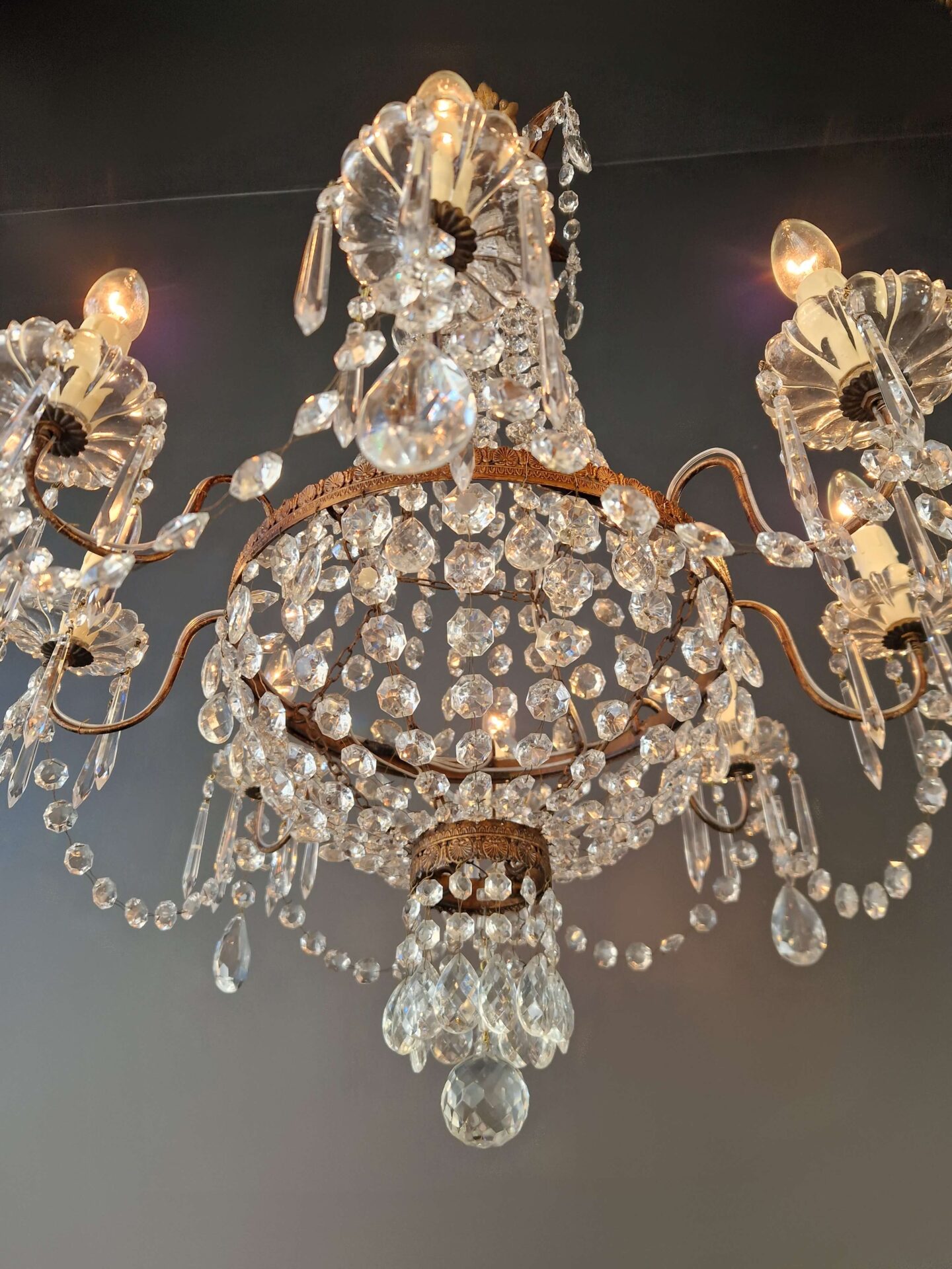 Der Kronleuchter wird in einer maßgefertigten Holzkiste versendet, um einen sicheren Transport zu gewährleisten. Weltweiter Versand ist daher kein Problem.