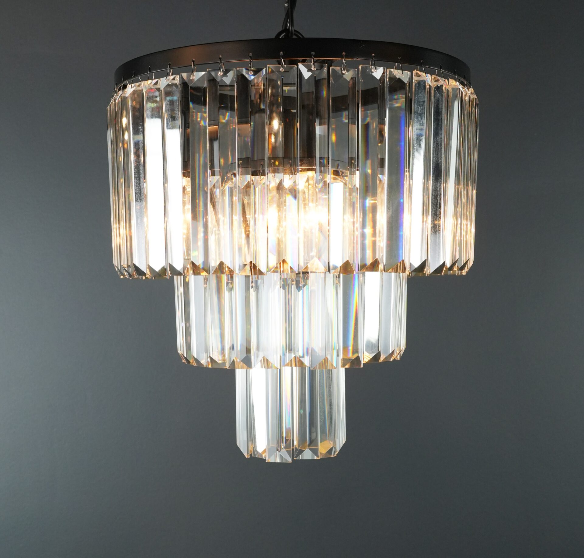 Der Kronleuchter verfügt über 3 E14-Fassungen
